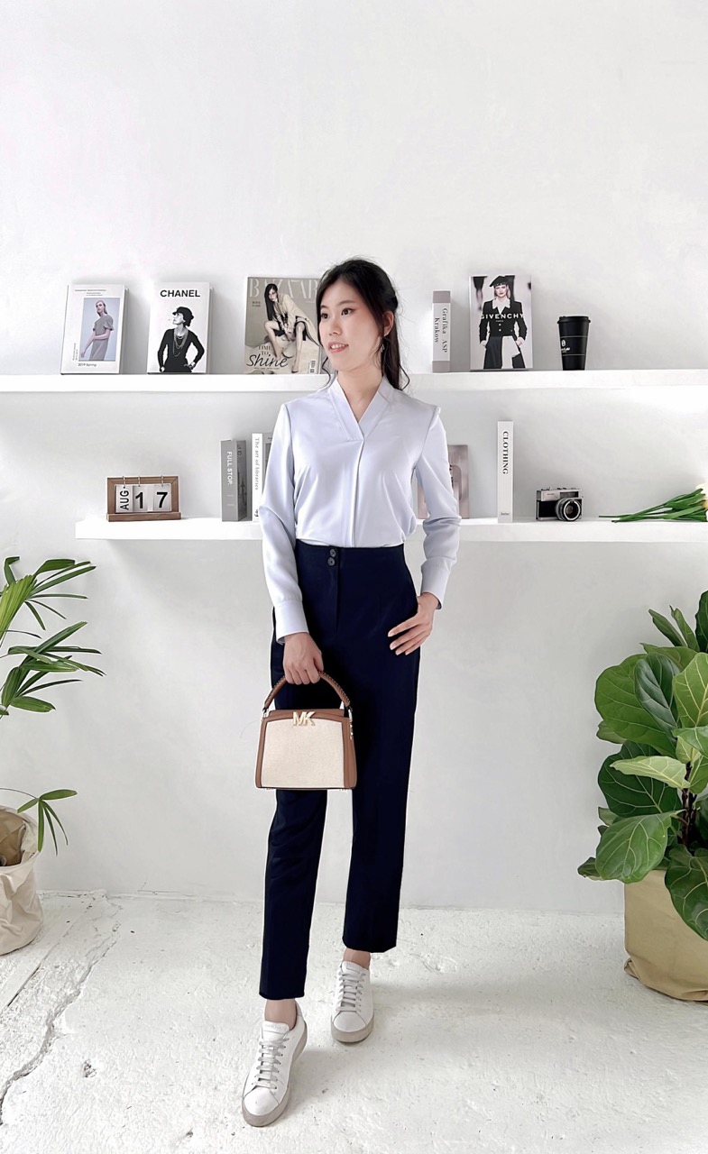 唯衣設計款造型兩顆釦無腰頭小直筒褲P-25